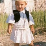 “Veshja tradicionale çame, thotë autori, ishte kostumi kombëtar: fustanellat e bardha, kalcat e bukura dyngjyrëshe lidhur me fjongo me xhufkat e mëdha me ngjyrë të zezë, me këmisha të bardha e me mëngë të gjëra, me jelek të zi ose blu… të qëndisur me gajtan, me brezin në mes, ku vendosnin edhe koburen. Në kokë mbanin feste me xhufkë…”, (J.Sarras, vep.e përm.).